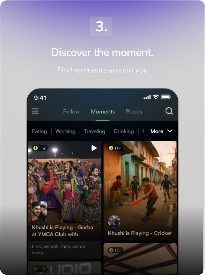 Discover how Check out real-time footfalls, live moments, and trending spots near you.